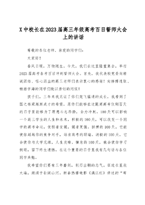 X中校长在2023届高三年级高考百日誓师大会上的讲话.docx
