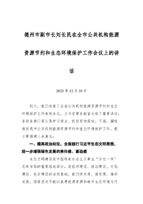 德州市副市长刘长民在全市公共机构能源资源节约和生态环境保护工作会议上的讲话.docx