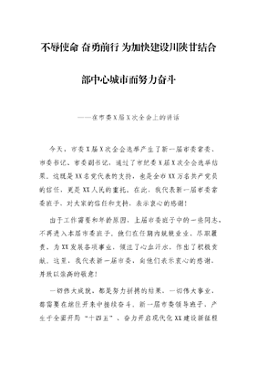 不辱使命 奋勇前行 为加快建设川陕甘结合部中心城市而努力奋斗 ——在市委X届X次全会上的讲话.docx