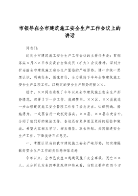 市领导在全市建筑施工安全生产工作会议上的讲话.docx