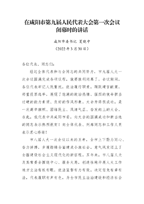 在咸阳市第九届人民代表大会第一次会议闭幕时的讲话.docx