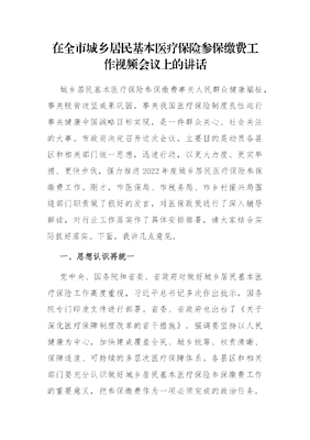 在全市城乡居民基本医疗保险参保缴费工作视频会议上的讲话.docx