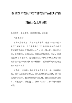 在2021年农民丰收节暨农副产品推介产销对接大会上的讲话.docx