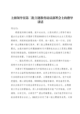 上级领导在第二批主题教育动员部署会上的指导讲话.docx