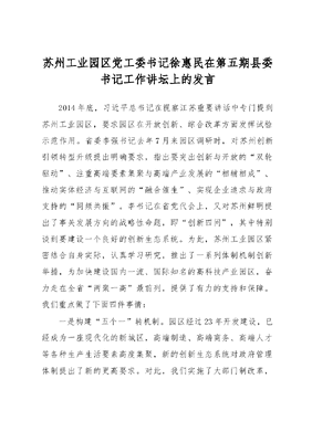 苏州工业园区党工委书记徐惠民在第五期县委书记工作讲坛上的发言.doc