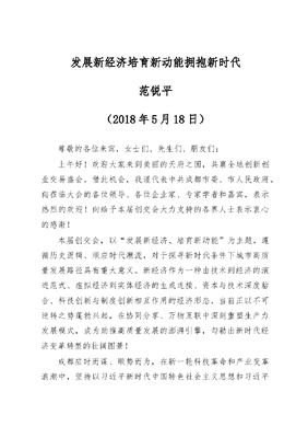 成都市委书记范锐平主旨演讲“发展新经济、培育新动能、拥抱新时代”.doc