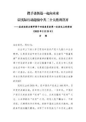 方伟同志在政协连云港市第十四届委员会第一次会议上的讲话.docx