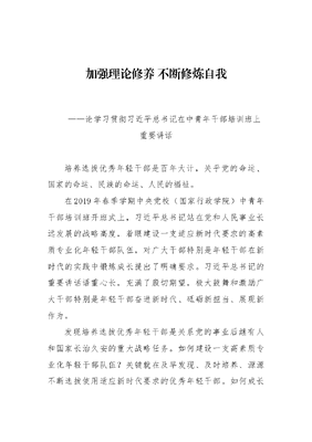 人民日报评论员:加强理论修养不断修炼自我——论学习贯彻习近平总书记在中青年干部培训班上重要讲话.docx
