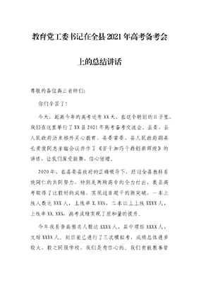 教育党工委书记在全县2021年高考备考会上的总结讲话.docx