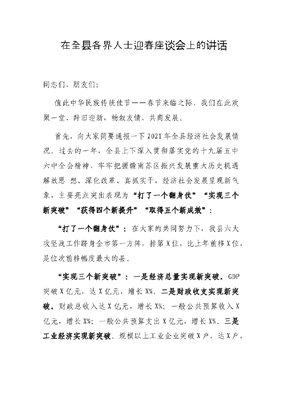 在全县各界人士迎春座谈会上的讲话.docx