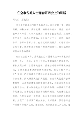 在全市各界人士迎春茶话会上的讲话.docx