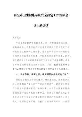 在全市卫生健康系统安全稳定工作视频会议上的讲话.docx