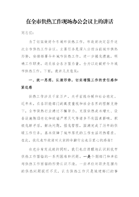 在全市供热工作现场办公会议上的讲话.docx