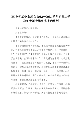 XX中学工会主席在2022—2023学年度第二学期第十周升旗仪式上的讲话.docx