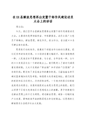 在XX县解放思想再出发暨干部作风建设动员大会上的讲话.docx