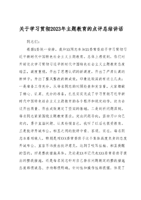 关于学习贯彻2023年主题教育的点评总结讲话.docx