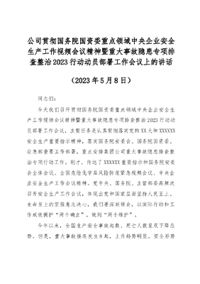 党委副书记、总经理在集团公司重大事故隐患专项排查整治2023行动部署会议上的讲话.docx