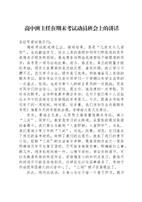 高中班主任在期末考试动员班会上的讲话.docx