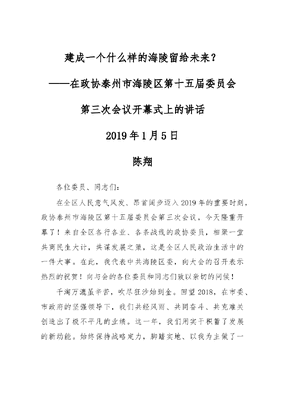 在政协泰州市海陵区第十五届委员会第三次会议开幕式上的讲话.docx