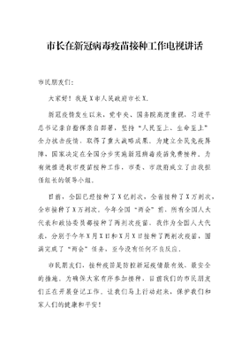 市长在新冠病毒疫苗接种工作电视讲话.docx
