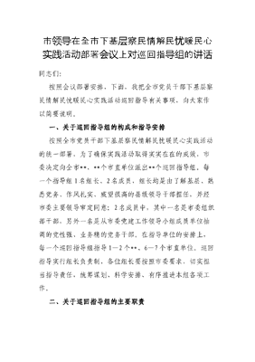 市领导在全市下基层察民情解民忧暖民心实践活动部署会议上对巡回指导组的讲话.docx