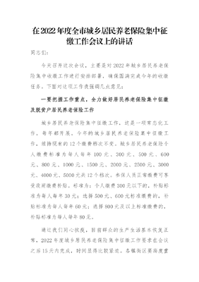 在2022年度全市城乡居民养老保险集中征缴工作会议上的讲话.docx
