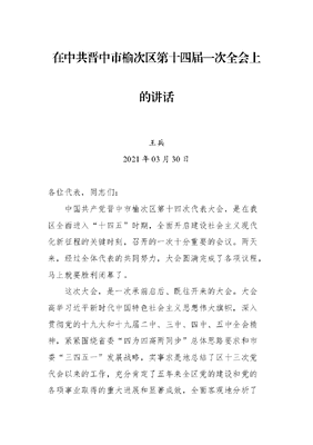 在中共晋中市榆次区第十四届一次全会上的讲话.docx