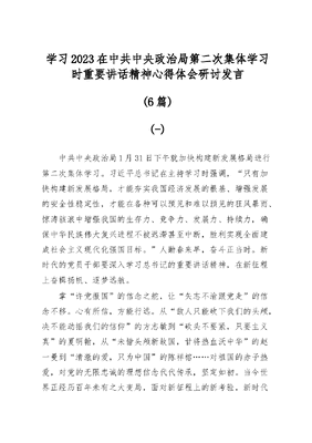6篇学习2023在中共中央政治局第二次集体学习时重要讲话精神心得体会研讨发言.docx