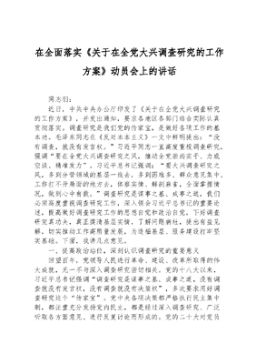 在全面落实《关于在全党大兴调查研究的工作方案》动员会上的讲话.docx