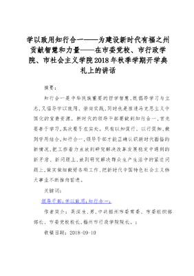 在市委党校2018年秋季学期开学典礼上的讲话.docx