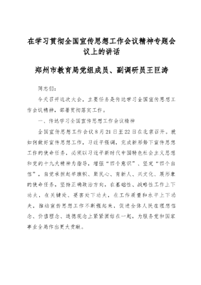 王巨涛在学习贯彻全国宣传思想工作会议精神专题会议上的讲话.docx