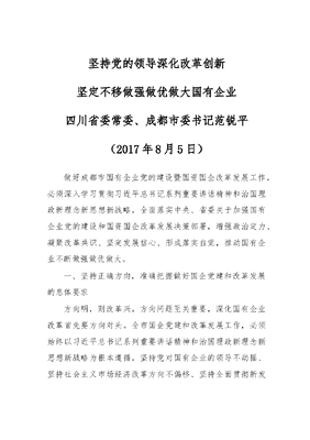 四川省委常委、成都市委书记范锐平:坚持党的领导深化改革创新坚定不移做强做优做大国有企业.docx