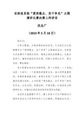 在财政系统“爱岗敬业、实干争先”主题演讲比赛决赛上的讲话.docx