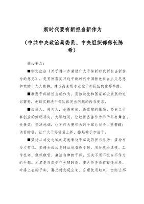 新时代要有新担当新作为(中共中央政治局委员、中央组织部部长 陈希)风过无痕整理.docx