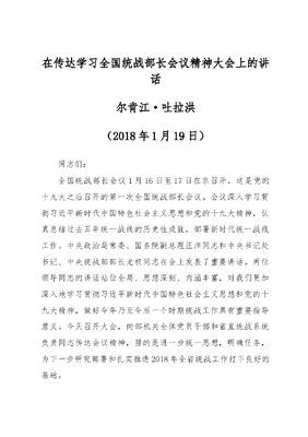 尔肯江·吐拉洪:在传达学习全国统战部长会议精神大会上的讲话.docx