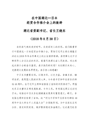 王晓东:在中国湖北─日本经贸合作推介会上的致辞.docx