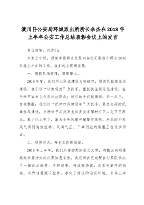 潢川县公安局环城派出所所长余杰在2018年上半年公安工作总结表彰会议上的发言.docx