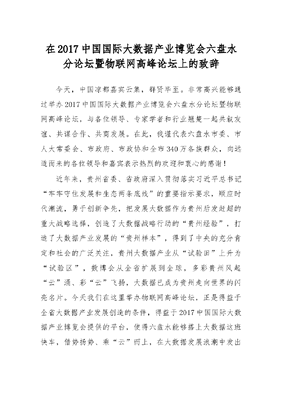 在2017中国国际大数据产业博览会六盘水分论坛暨物联网高峰论坛上的致辞.docx