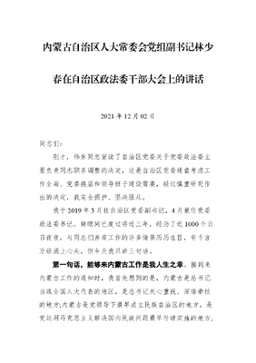 内蒙古自治区人大常委会党组副书记林少春在自治区政法委干部大会上的讲话.docx