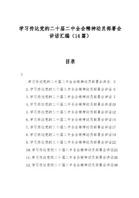 (14篇)学习传达党的二十届二中全会精神动员部署会讲话汇编.docx
