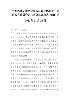 中共芮城县委书记尚玉良在政协第十一届芮城县委员会第二次会议开幕式上的讲话.docx