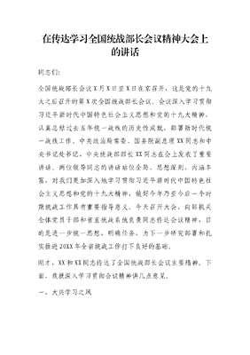 在传达学习全国统战部长会议精神大会上的讲话.docx