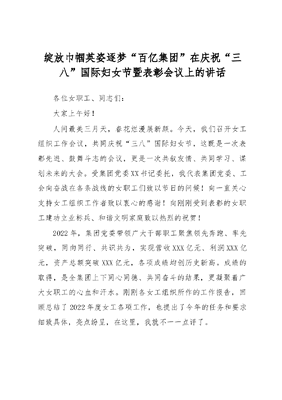 绽放巾帼英姿逐梦“百亿集团”在庆祝“三八”国际妇女节暨表彰会议上的讲话.docx