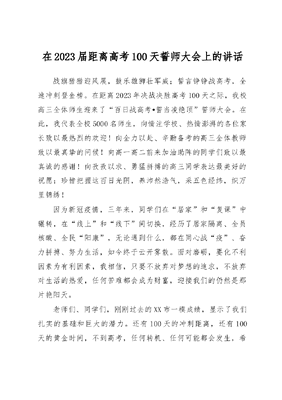 在XX高中2023届高考百日誓师大会上的讲话.docx