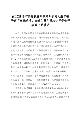 在2023年市委党校春季学期开学典礼暨年轻干部“赋能成长、奋进先行”周末知行学堂开班式上的讲话.docx