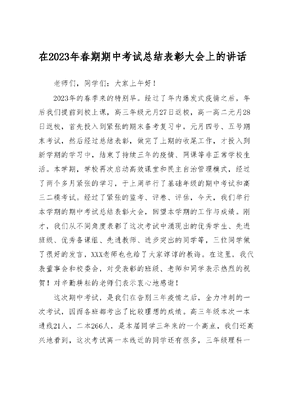在2023年春期期中考试总结表彰大会上的讲话.docx