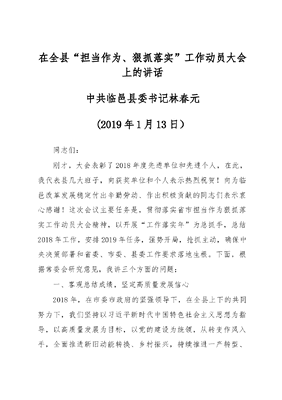 在全县“担当作为、狠抓落实”工作动员大会上的讲话.docx