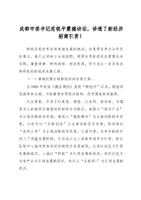 成都市委书记范锐平震撼讲话,讲透了新经济招商引资!.docx