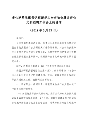 市住建局党组书记郭新华在全市物业服务行业文明创建工作会上的讲话.docx