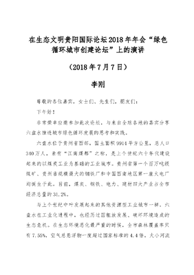 —在生态文明贵阳国际论坛2018年年会“绿色循环城市创建论坛”上的演讲.docx